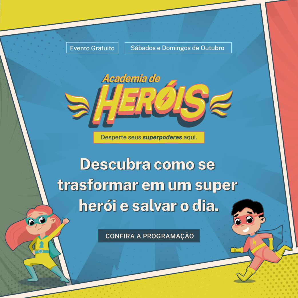 A Academia de Heróis chega com tudo ao Shopping Parangaba. Estamos à procura de super-heróis para desbravar suas habilidades em circuitos de agilidade, desafios de equilíbrio, testes de superinteligência e missões de cooperação.